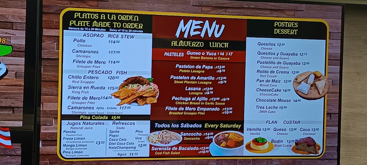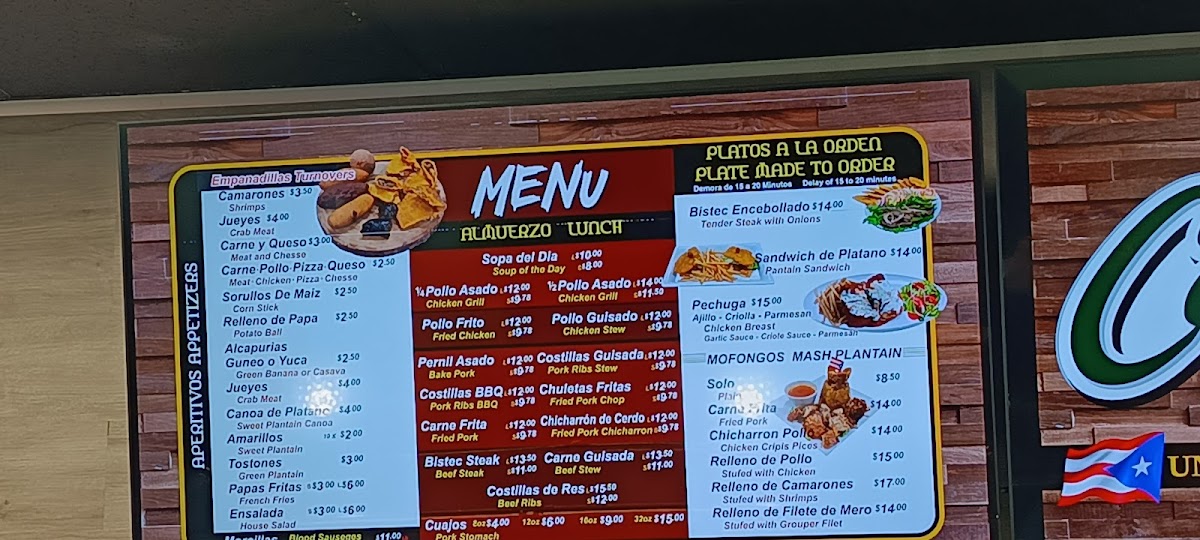 Guests can enjoy classic favorites such as Chuleta Frita and Bistec Encebollado, alongside popular sides like Tostones and both Spanish and yellow rice with beans. For those who appreciate vibrant seafood dishes, options like Mofongo Con Camarones provide a flavorful experience that pairs well with the relaxed and inviting atmosphere.